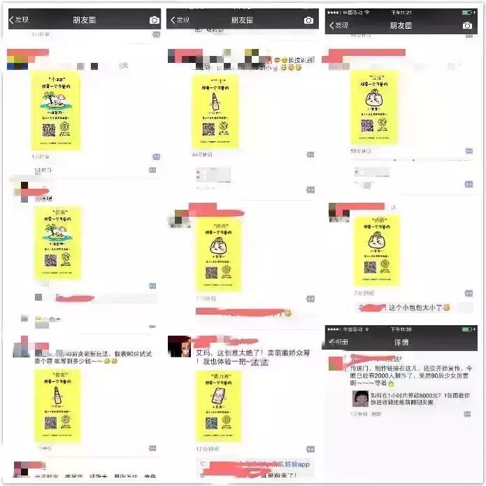 意见领袖的朋友圈 CEO、微商、微信小网红、群主、她们的朋友圈就是广告位,而且具备导向作用,在我们CEO小芒姐姐的朋友圈做了灰度测试,参与的人数达46人成功筹款800元,确定可以使用;