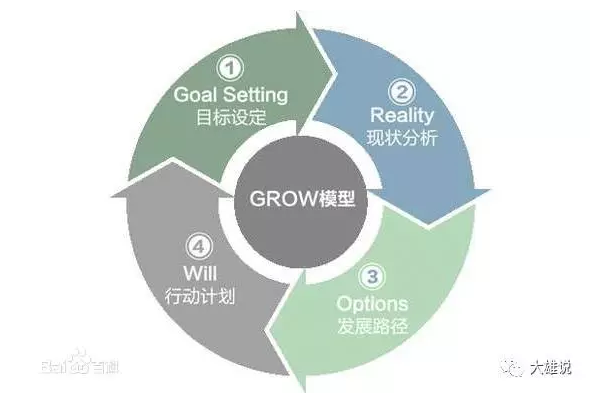 在想清楚上面一系列的问题之后,我们可以再来想想我们新的一年主要做什么了。我们可以用GROW模型做一下我们的短期规划。这本来是一个企业帮助员工成长的方法模型,但是也可以用于我们对于近期目标实现路径的思考。