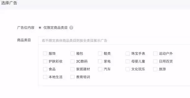 目前文中广告类目有服装、箱包、鞋类等,如下图所示: