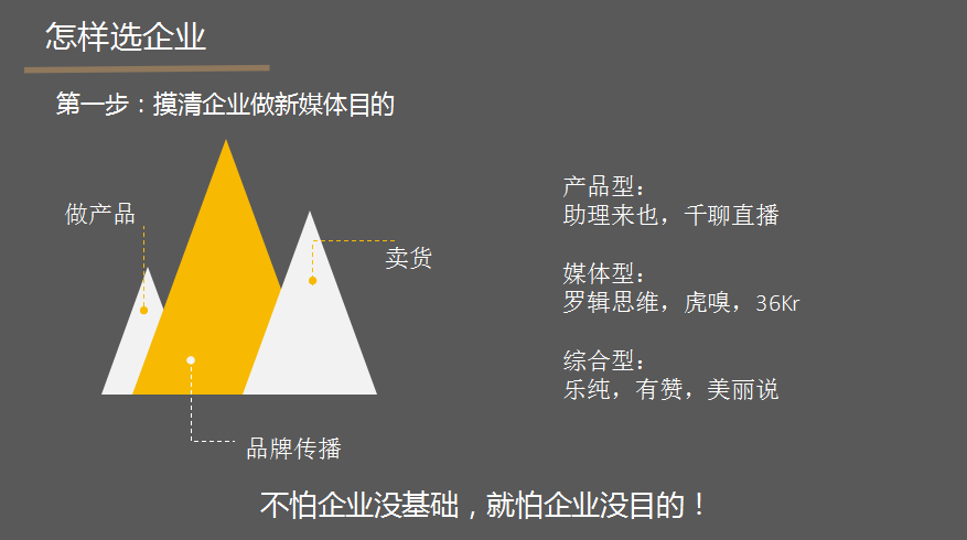 有些同学会问,有些号又有媒体属性,又卖货?那怎么判断他最本质在做啥?比如逻辑思维已经从单纯的媒体变成了媒体+卖货。但其核心还是在于媒体。判断这个点的依据是:其公众号更多的是读者,而非客户。
