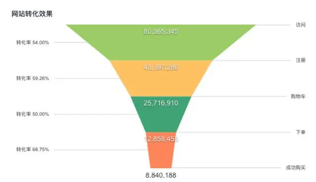包含:访问数,注册数,加入购物车数,下单数,成功购买人数