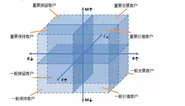 通常,我们会将这3个指标分为8类,其实最多能到125类,不过确实没必要划分的那么详细。