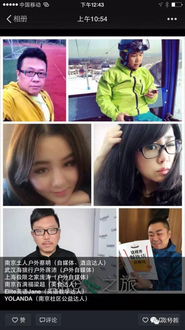 我的粉丝3000多人,里面怎么组成的呢?我原有的顾客可能几百人,找我订酒店的人几百,户外从业者,有估计要近千人,因为我在这个行业十几年。然后,还有一些同学什么的。怎么利用这个朋友圈做一些事情?