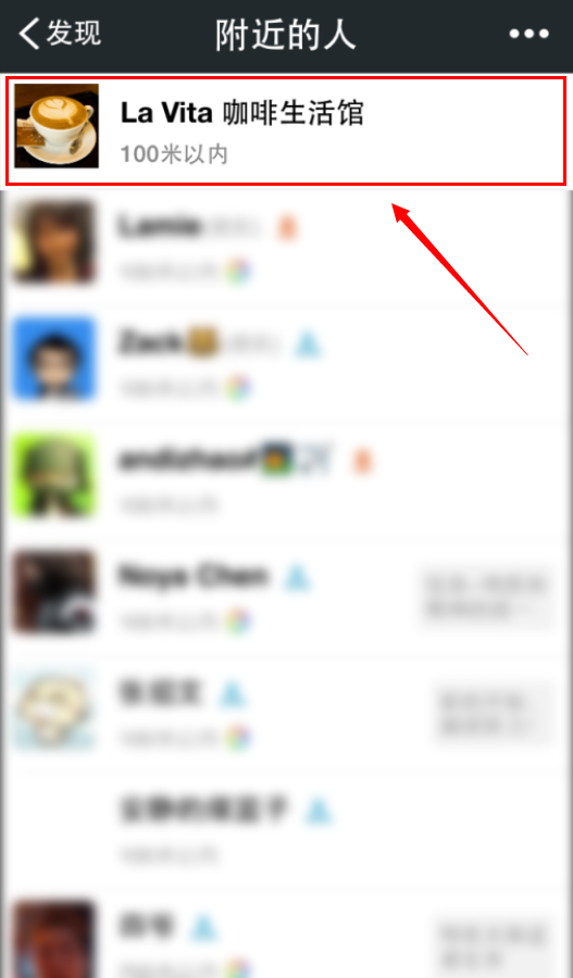 微信公众平台商户的门店经过审核后,有机会在“附近的人”列表中进行展示曝光。