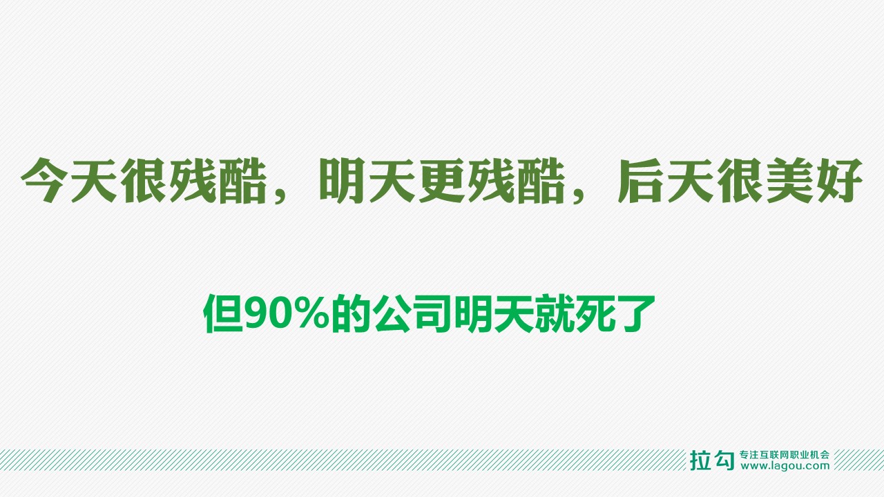 拉勾网是互联网招聘领域里面最大的公司,我们在极短的时间内,拿到了3000多万美金的融资,我们手里的现金是远超跟随者的。所以这次我们拿出500万来做年末的招聘周。