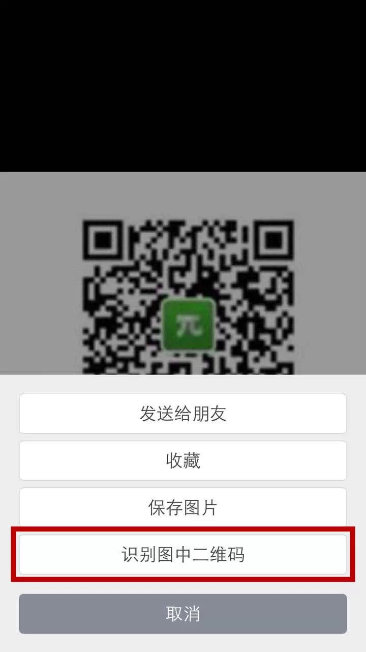 如何扫描手机里一张含二维码的图片?拿另一个手机扫?保存起来,在扫一扫中从相册选图片?NO!只要你查看图片时长按,并在接下来弹出的菜单选项中选择“识别图中的二维码”就行了。