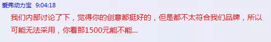 客户表示很理解,直接把1500的创意费打到我支付宝。