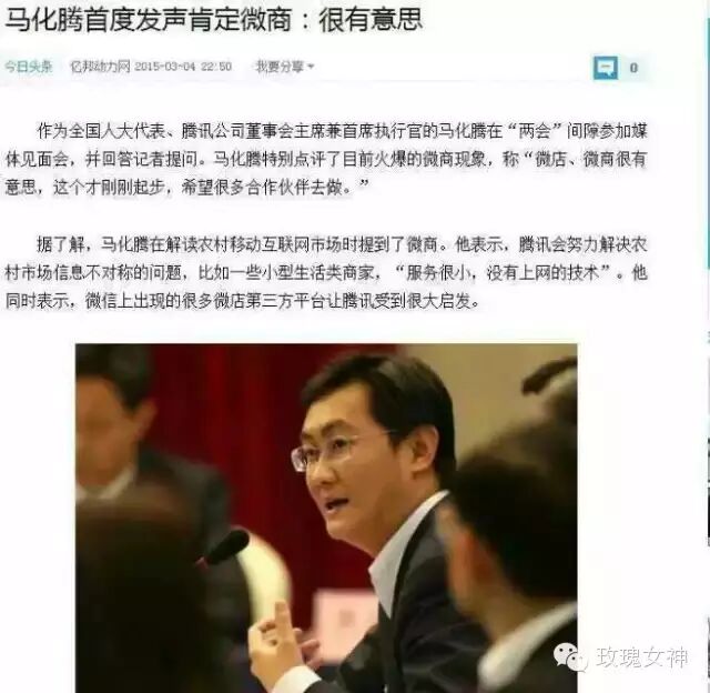 综合早前腾讯董事会主席对微商的表态以及取消“付款”“支付宝”等敏感词的风险提示不难看出腾讯对待微商的态度开始由谨慎转变为支持!