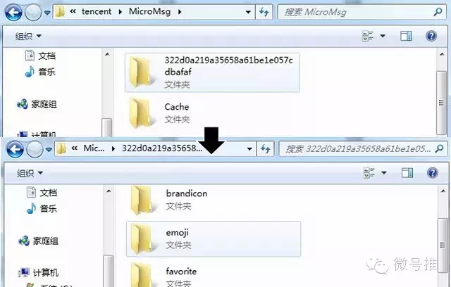 首先,你需要在你的微信中安装好你想要的表情。然后将你的手机连接电脑进入手机的SD卡,进入这个文件路径/tencent/MicroMsg,此时你可以看到有个文件夹的名称是一串数字和字母的组合,进入这个乱码文件夹并找到emoji文件夹。