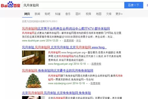 吃货到了某地,都要在网上搜索一下这个地方什么东西比较好吃;而狼一族到了某地,也要到四处处打听什么地方有特殊的服务。在北京等北方地区,男人找高质量特殊服务,一般都去丝足会所。于是就催生了这个类型的导航点评网站。百度搜索“兔兔体验网”“风月体验网”“北京丝足会所”等关键词,你会看到很多这个类型的网站。
