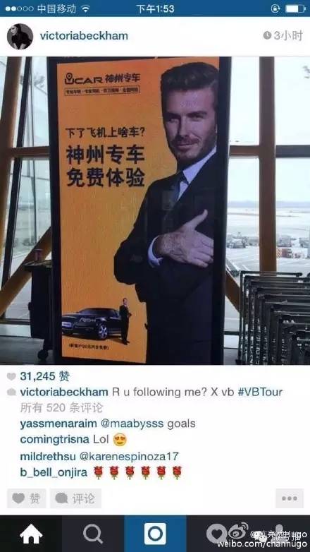 15、社会化营销的传播路径,真的是难以控制啊!我们一个代言人(贝克汉姆)的威力,引来另一个更强的代言人(维多利亚)的传播。这种传播不但毫无先兆,也不知道会在什么平台引起多少度的更多传播。所以说,社会化营销是让消费者自己塑造品牌的方式。不敢放手也没有这种威力。