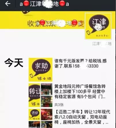 大家看下上面的图片,本地聊天,求职招聘,出租求租,拼车等可以说本地的生活服务类目几乎都有了。我也一个个点击看了下,确实不错,可以交流,发贴等,而且里面也有许多发布的帖子。为了想探个究竟,我也把加了他们地方城市的一个微信号,这个个人微信号也跟其他人一样,免费帮助在朋友圈发布一些广告信息。如下图: