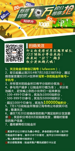 陆金所社媒阵地男性粉丝占比超6成,为充分调动其活跃度并为官网陆积分商城做宣传,7月世界杯期间陆金所在微信公众号发起“抢积分”活动。