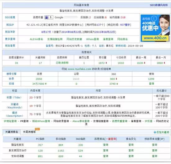 第一个错误:选择了百度指数奇高的关键词,我的网站标题叫做:脂溢性脱发,脱发原因及治疗,发际线调整-头发课,我想要的关键词,每天百度整体搜索指数都在1000以上,竞争太激烈。这导致,我的网站运营了八个多月,第一个关键词,前100都没有进入过。