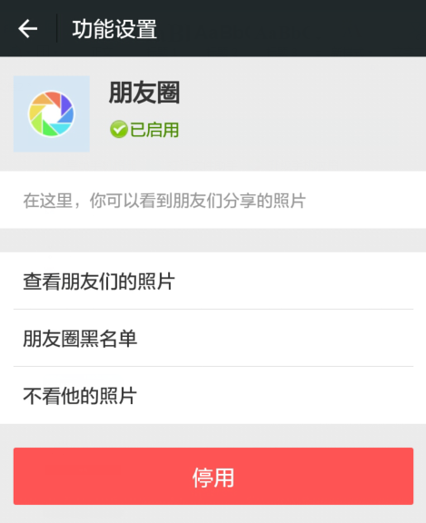 点击“我”——“设置”——“通用”——“功能”——“朋友圈”,轻轻按下“停用”。