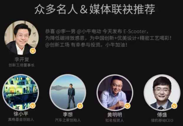 作为“小牛电动”项目的“牛头”,牛电科技CEO李一男本身拥有大量的粉丝团。李一男何许人也?曾经的华为常务副总裁、百度的首席技术官、中国移动12580的CEO。