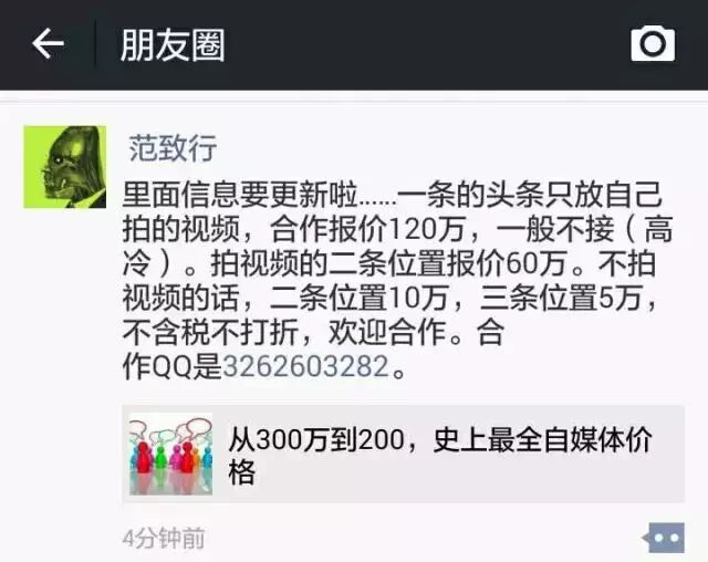 导读:最近自媒体圈不平静啊,前天公关007刚踢爆所谓的“史上最全公众号广告报价”,就引发了自媒体圈内人的一阵“呵呵”。微号推一直做微信投放推广这块,也知道行情。今天就不论真实价格是多少了的,聊聊下这个“价值”。