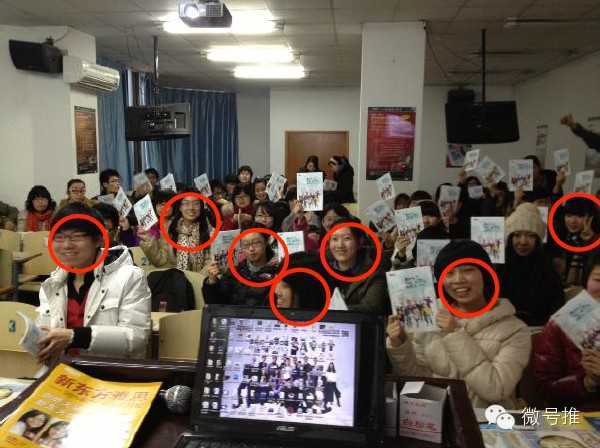 图片中圈红圈的就是当时办年卡的同学,当时夏鹏老师在沈阳新东方,是世界英语演讲比赛的冠军,他就是我们对粉丝说的神秘嘉宾,夏鹏老师比赛的演讲视频+现场,让现场的同学非常兴奋。