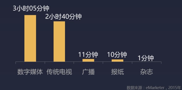 在内容生产呈现大解放的状态下,消费层面的市场也日趋成熟。据美国市场调研公司eMarketer统计,中国受众每日在数字媒体上的消费市场时长超过传统媒体的总和,平均在报纸上仅能停留10分钟。