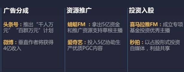 正是因为意识到内容创业对于平台方的重要意义,各平台均推出了优厚的扶持政策,力图将最优秀的内容创业者争取到自己的阵营之中。