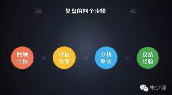 我们在做每一件事情的时候,都是应该去复盘的,无论你是去做活动也好,做事情也好,做人也罢,你都需要去复盘的,都要经过这4步:回顾目标,效果评估,分析原因和总结经验。