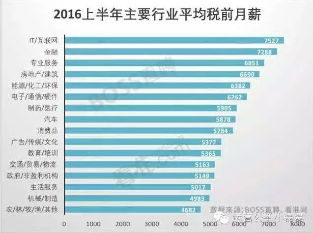下面是一份数据《2016上半年主要行业平均税前月薪》,时光倒转到几年前,国内平均薪酬最高的行业一直是房地产和金融,一直稳稳霸占着前两名,而如今互联网行业的平均薪酬正以高速发展的趋势甩开其他行业。在平常与人的交谈中,其他行业的人都对互联网行业的人才表示很羡慕,能够走在时代的前沿。