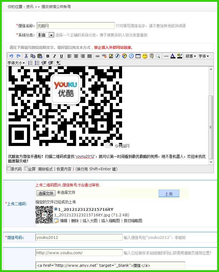2.未填写微信文字介绍或是在文字介绍内插入外部网站链接不会通过审核。