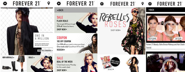 Forever 21的APP互动性高成功的打入目标族群,并且用户会想要持续使用以便随时得到最新资讯。