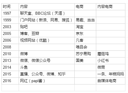 内容电商这个概念的发展也随着时代变化不同的表现形式,我们用图片简单的概括下内容电商的发展。