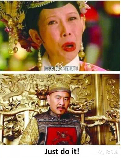 1、我觉得耐克的广告应该这样:当皇后说“臣妾做不到啊!”的时候,皇上就一只鞋扔过去,屏幕上啪啪啪几个字打上去:JUST DO IT!